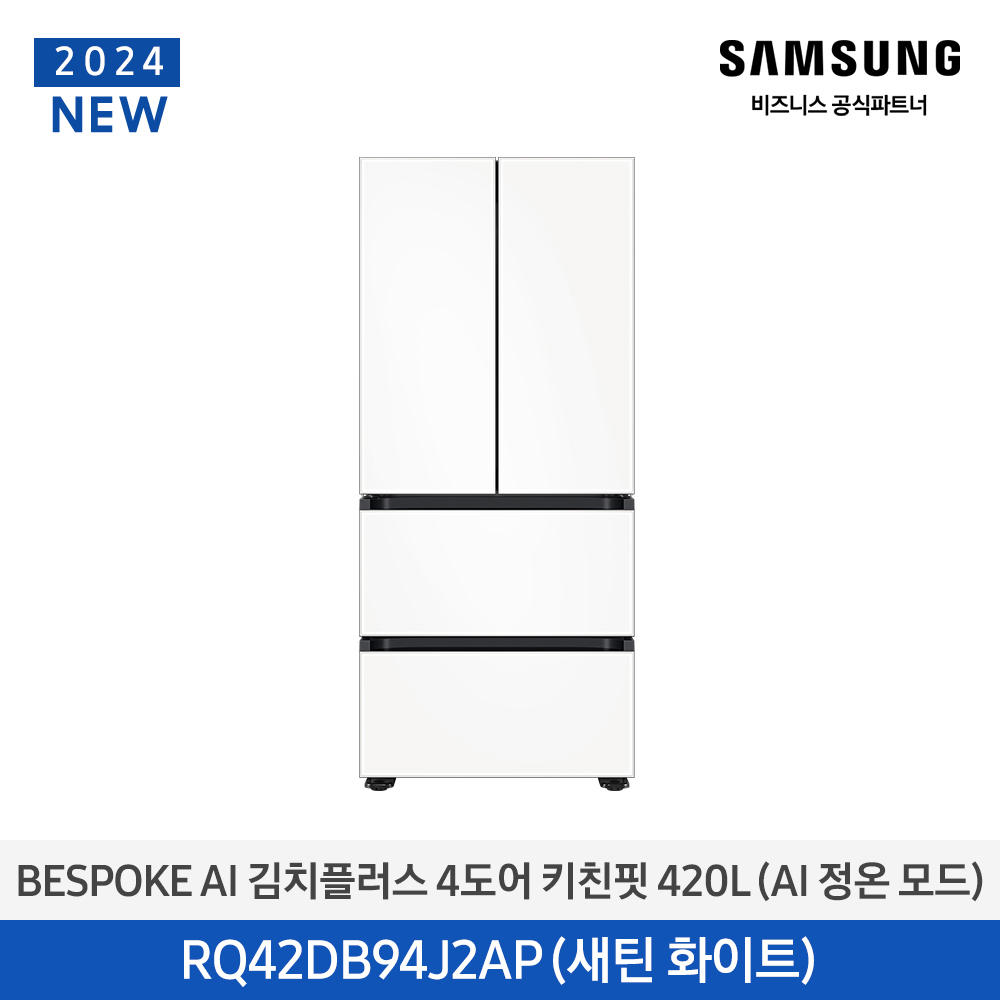 삼성 BESPOKE AI 김치플러스 4도어 490L AI정온모드 에센셜화이트 / RQ49...