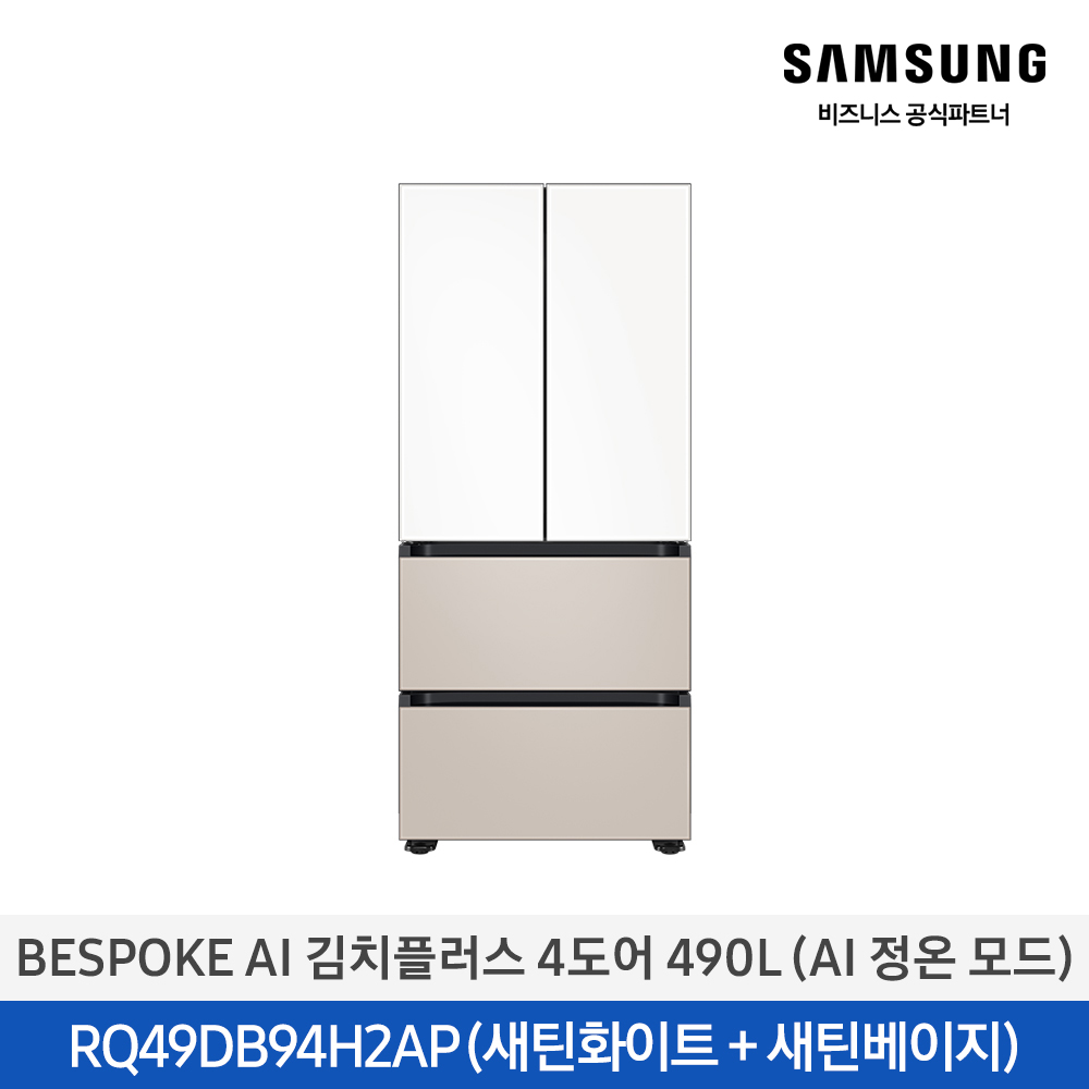 삼성 BESPOKE AI 김치플러스 4도어 490L AI정온모드 에센셜화이트 / RQ49...