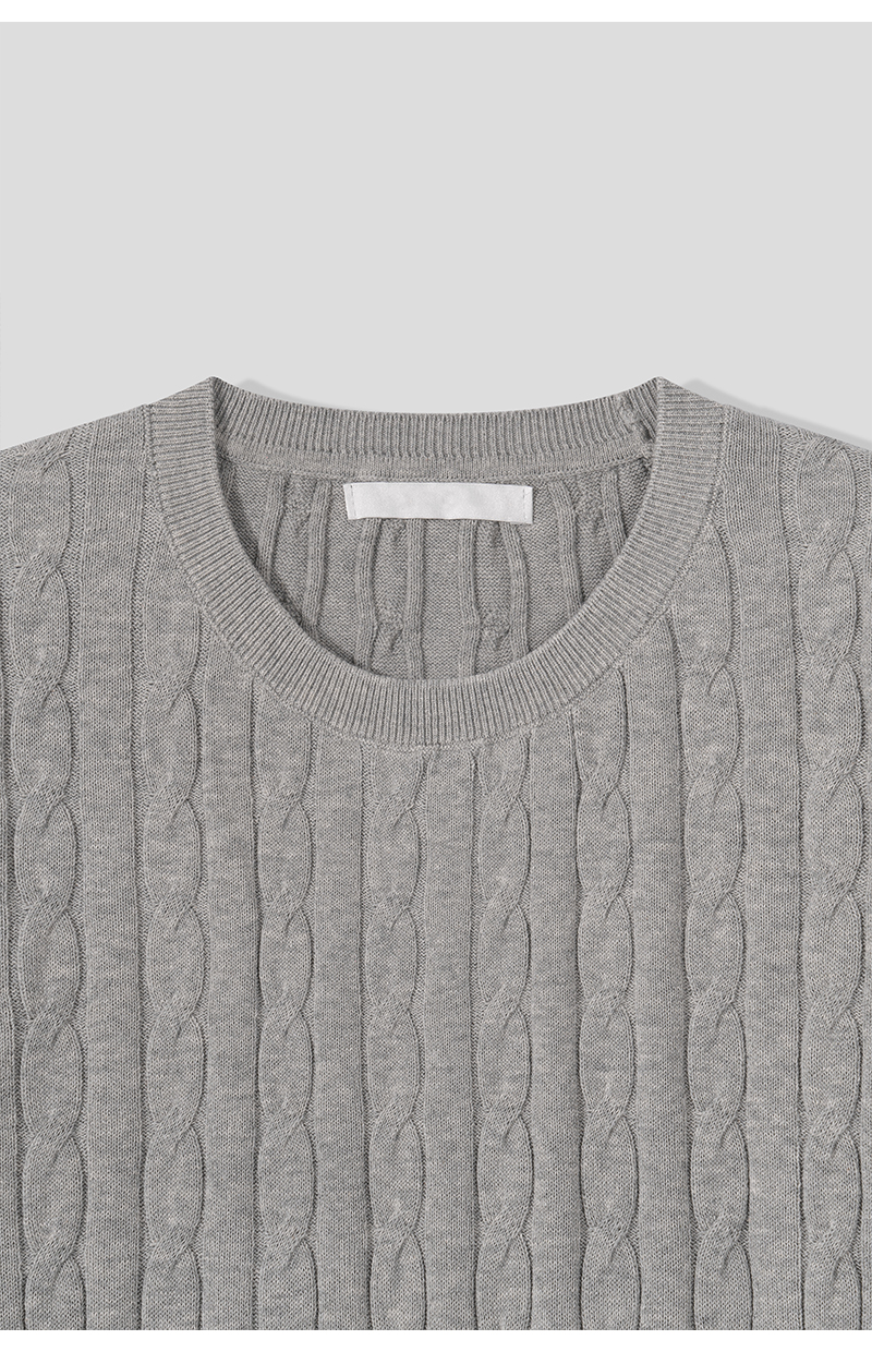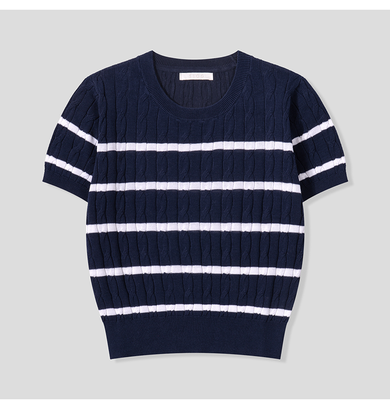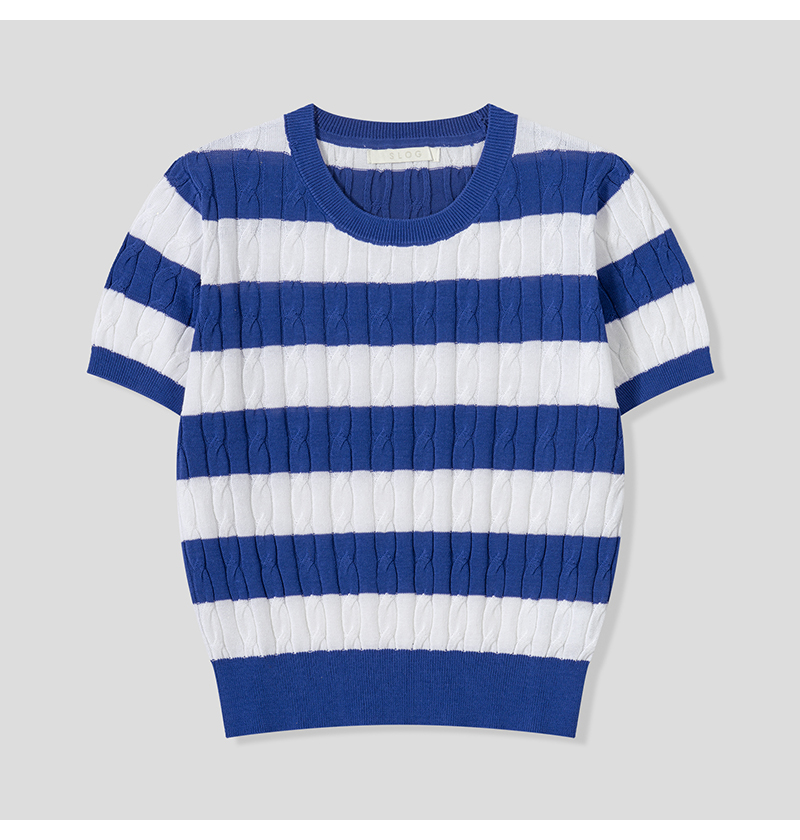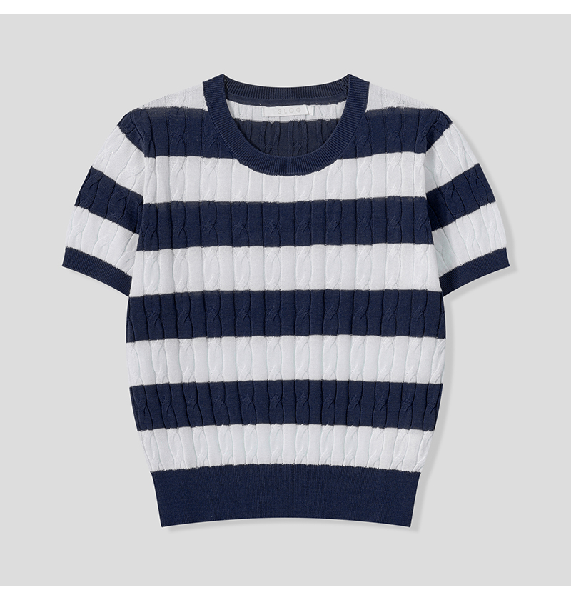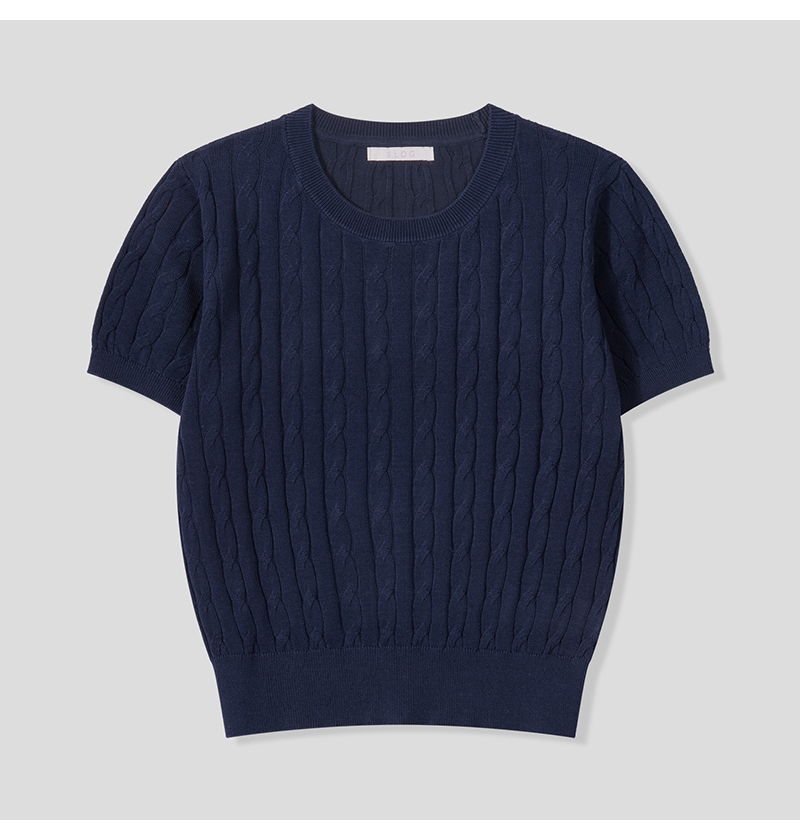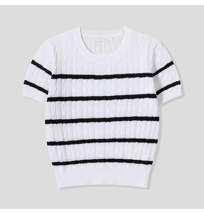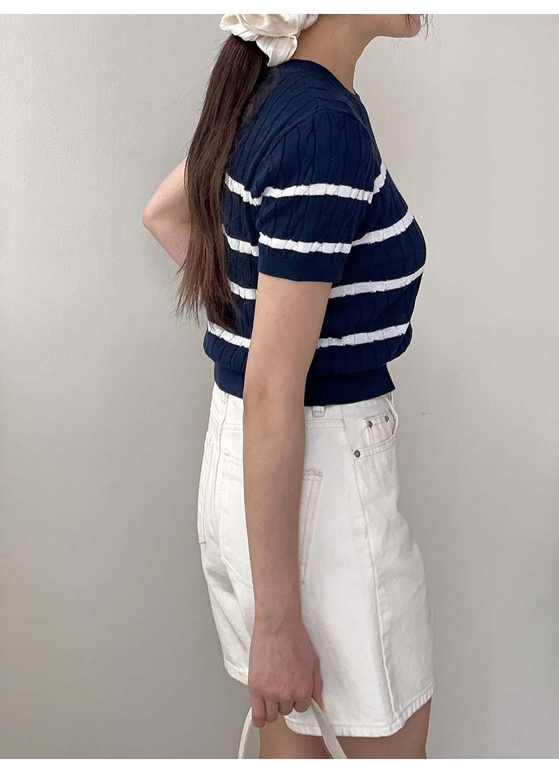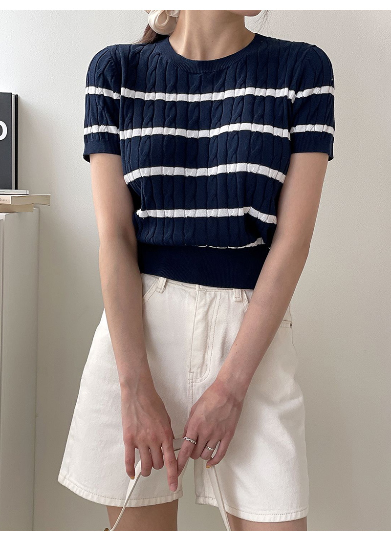 여자 세미크롭 배색 단가라 꽈배기 반팔 니트 SGW-KNH-Q076