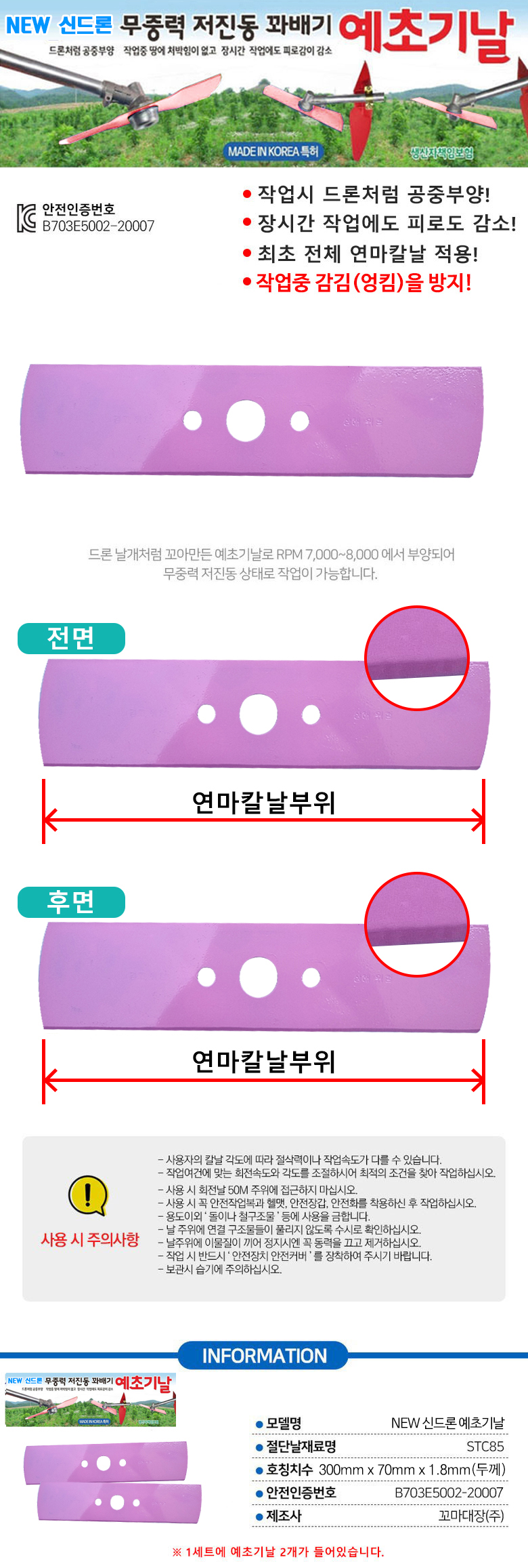 꼬마대장_ 드론 예초기날 2개 1세트(국산/예초기장착용)