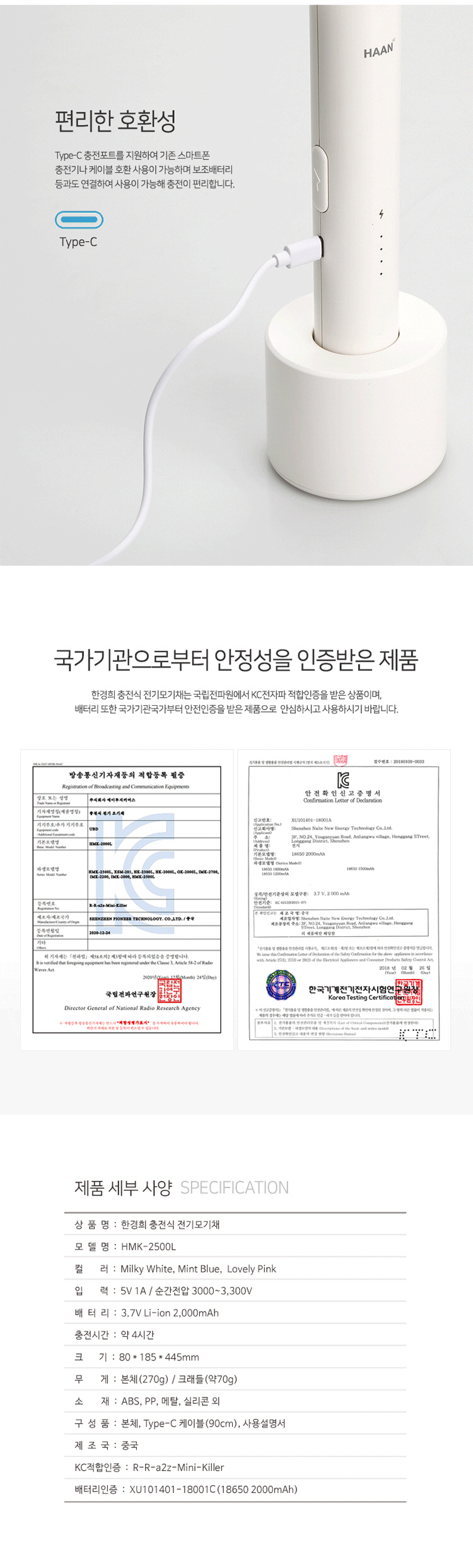 HAAN_한경희 충전식 전기모기채 HMK-2500L