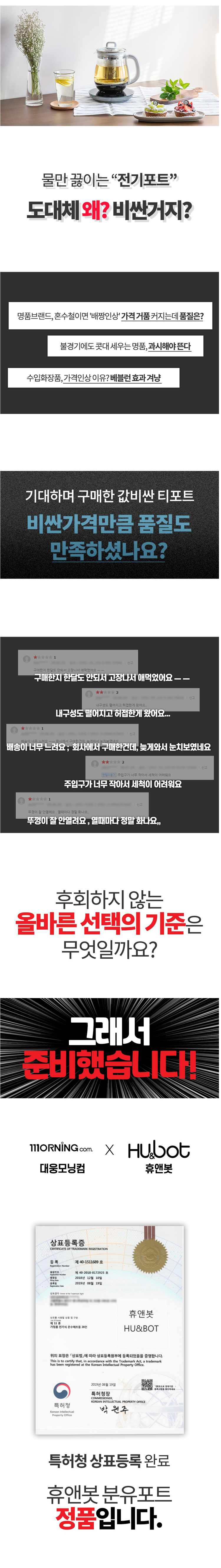 휴앤봇_ 프리미엄 무선 유리포트 HB-8090D (1.7리터)