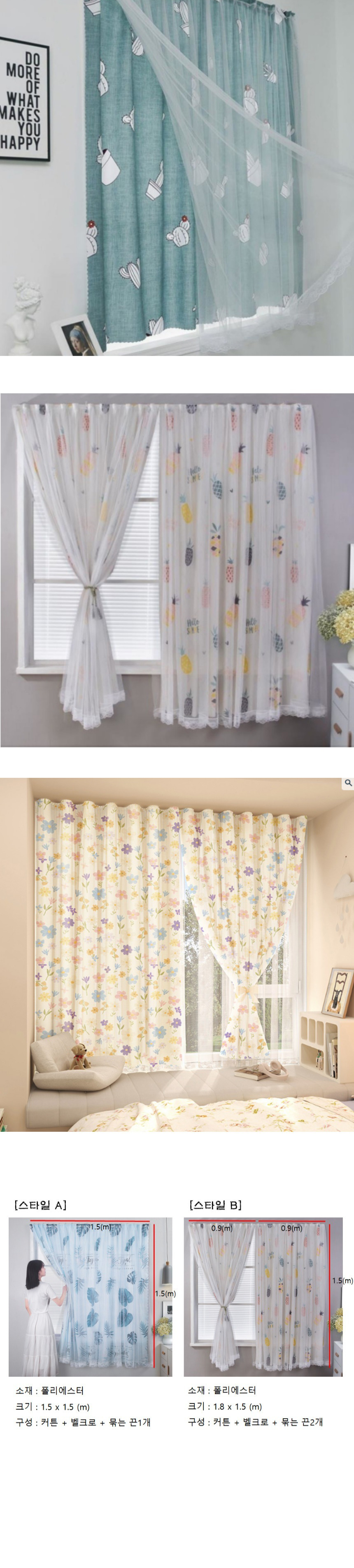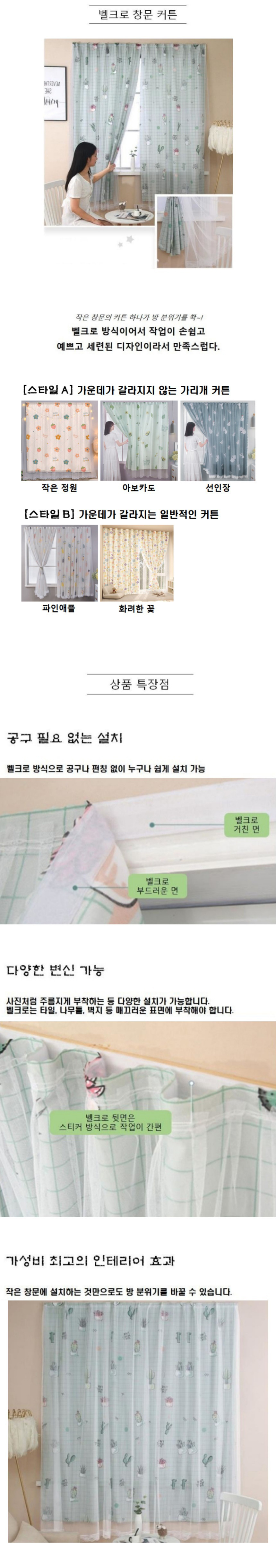 벨크로 방식 창문 커텐 찍찍이 이중 가리개 커튼(스타일B)