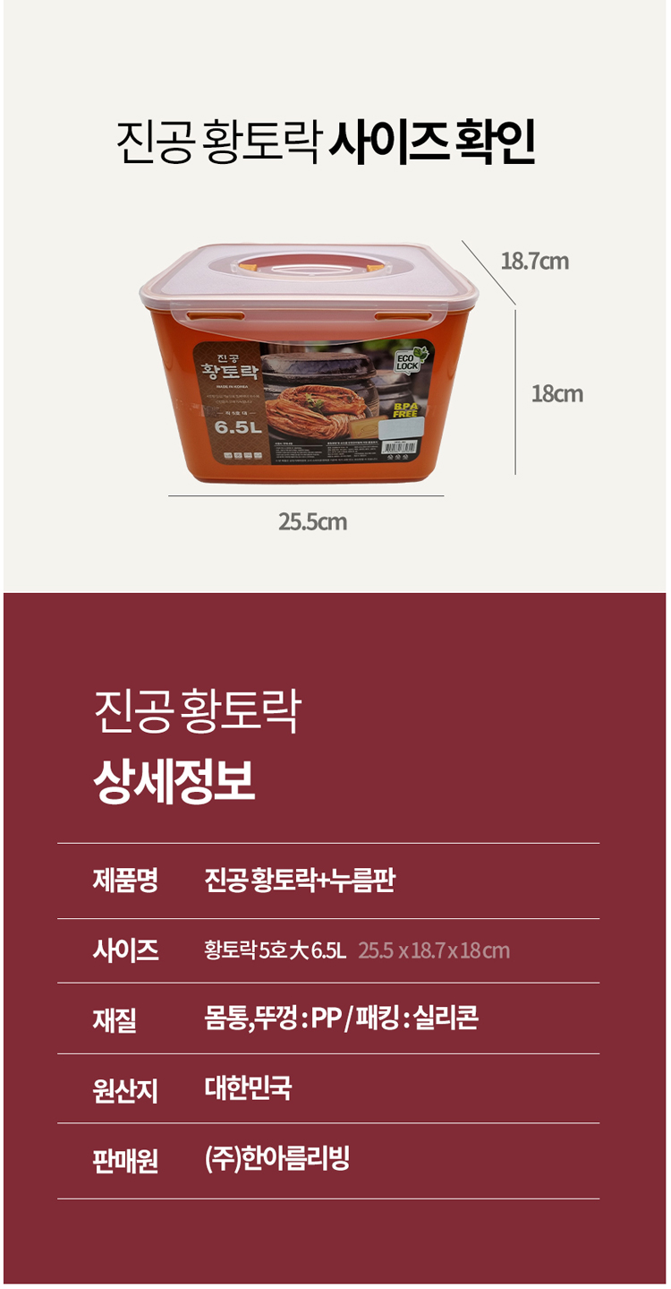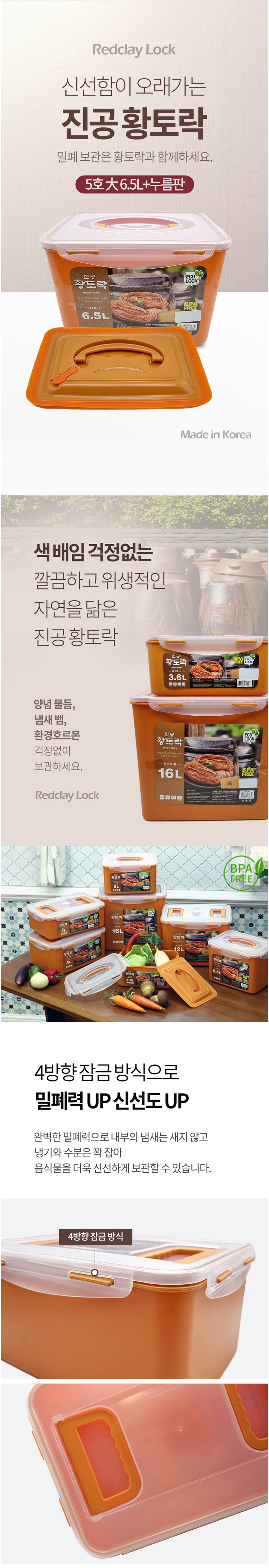 황토락 김치통 5호 대 6.5L 누름판포함 절임 밀폐용기
