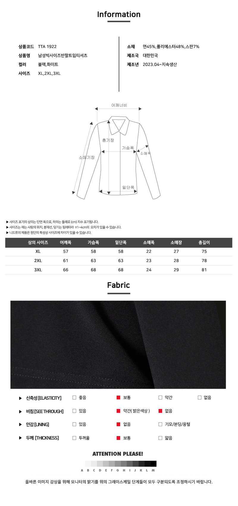 블레오[BLEO] 빅사이즈 남자 반팔 트임 티셔츠