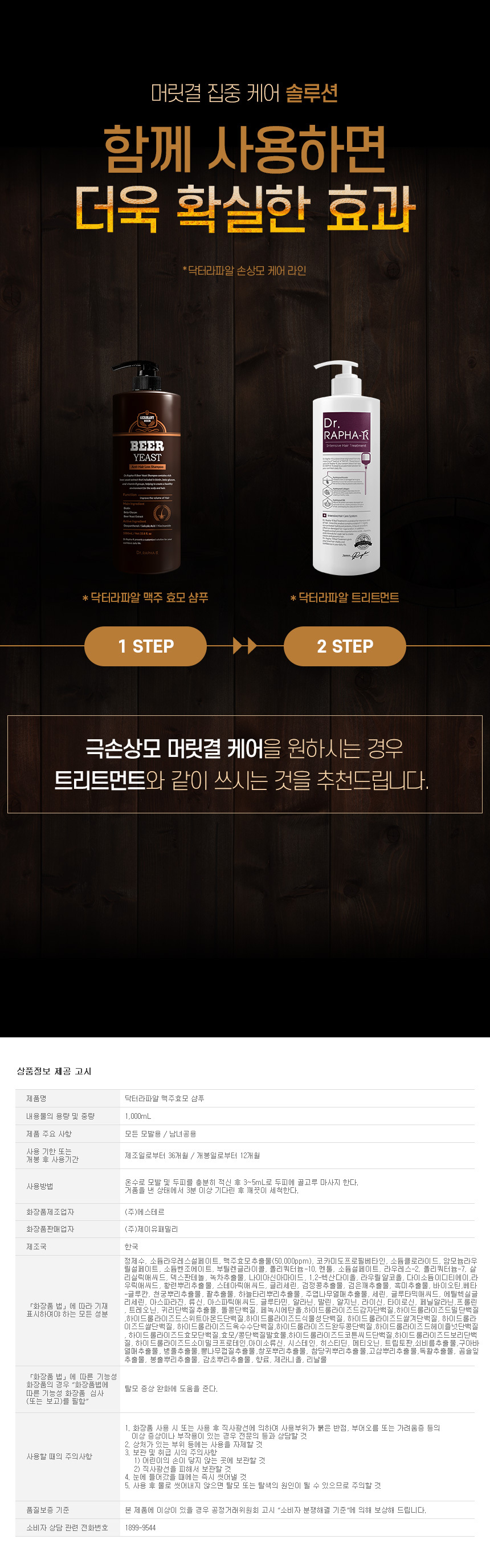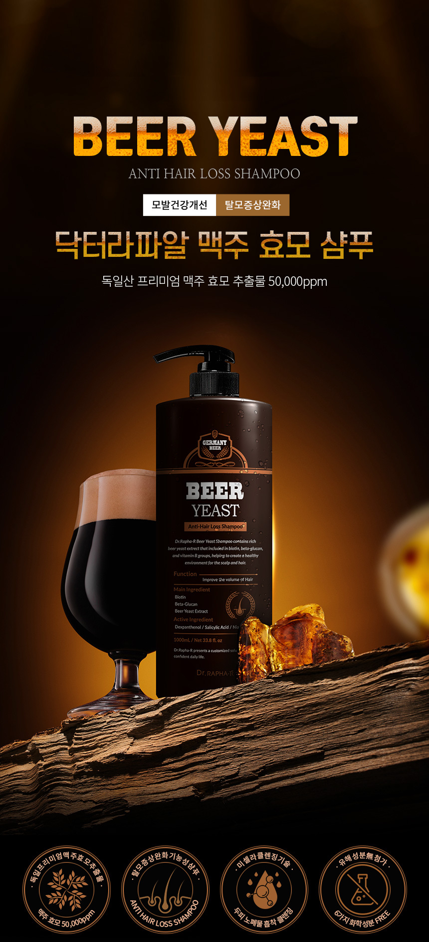 [닥터라파알] 독일산 맥주효모 탈모 샴푸 1L x 2 모발 볼륨 개선