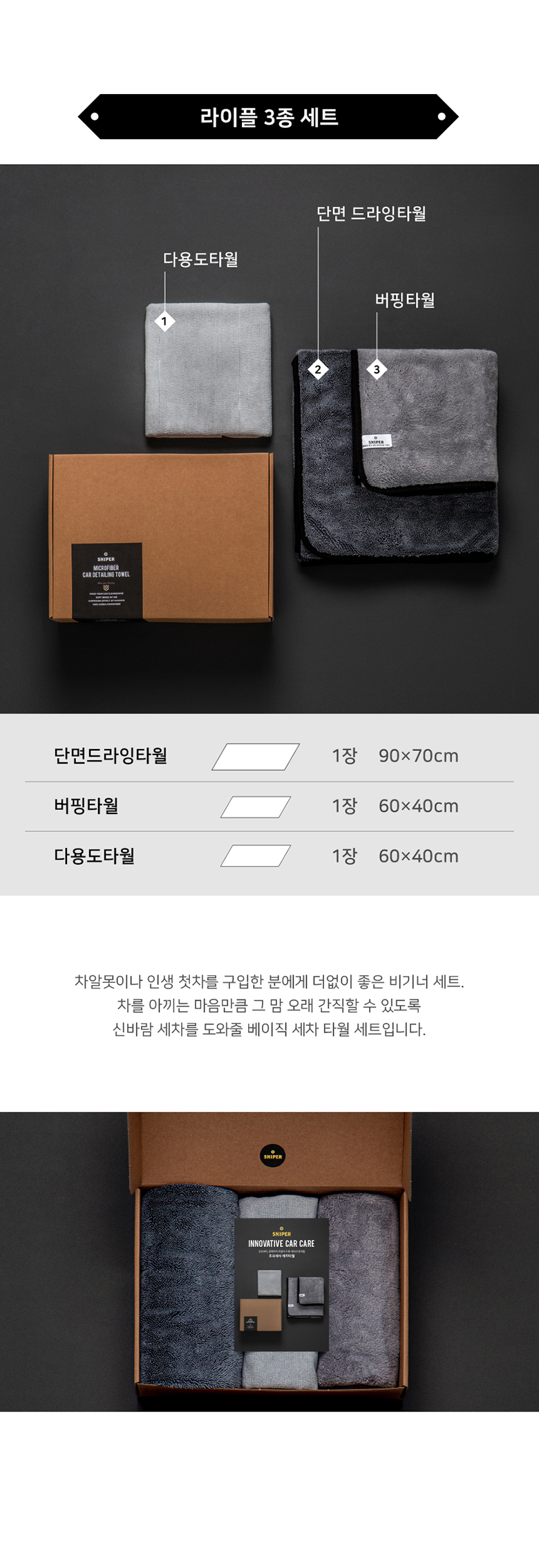 스나이퍼 세차타월 라이플 세트 3P