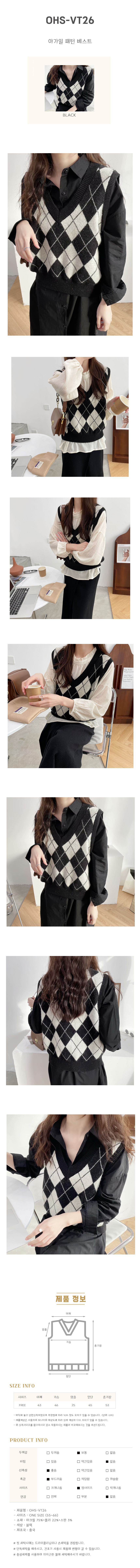 여자 아가일 패턴 브이넥 캐주얼 니트 조끼 DMOW-VEA-SOHSVT26
