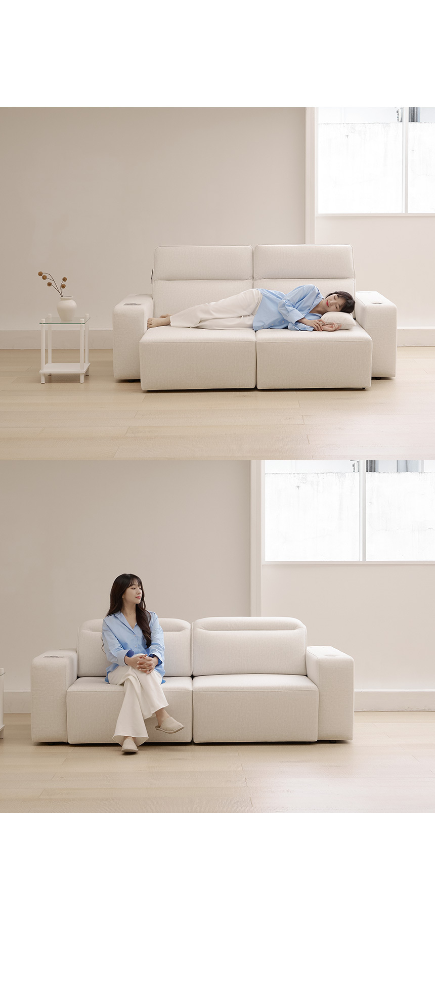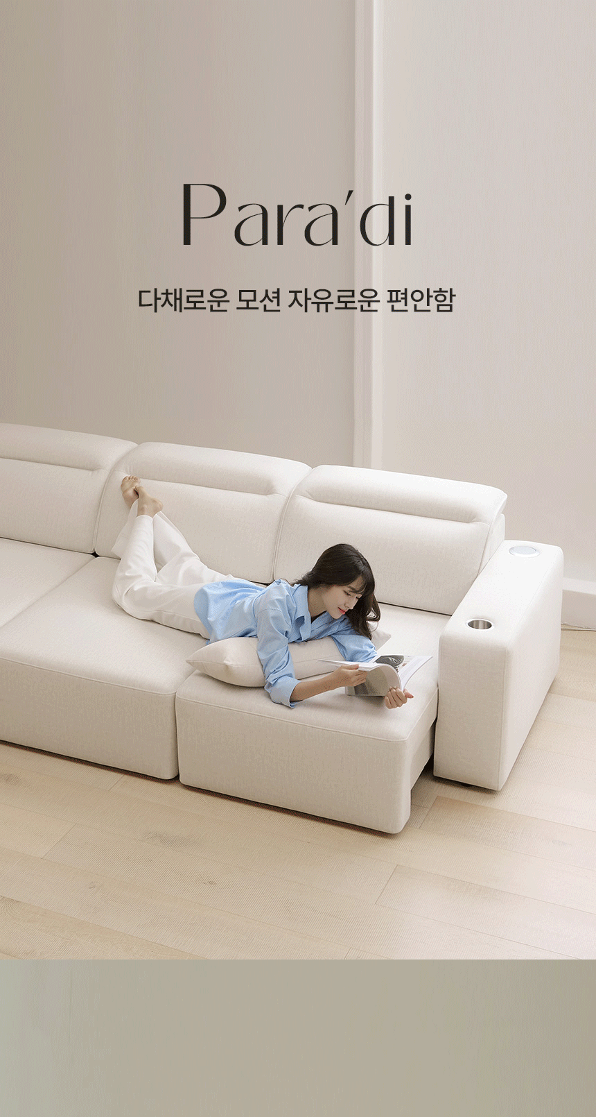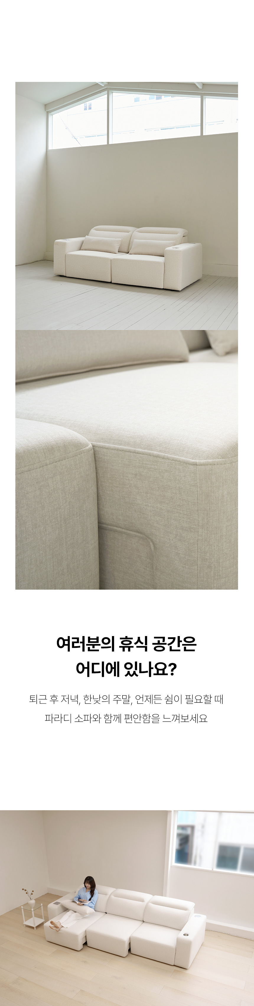 파라디 이지클린 슬라이딩 패브릭 리클라이너 3인용 소파 무빙 일체형 전동 4인 쇼파 거실 소파베드