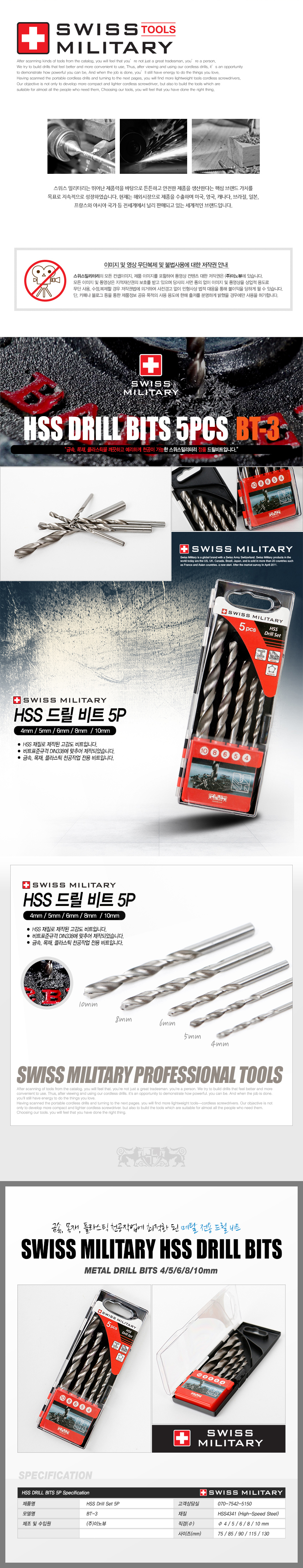 [스위스밀리터리] HSS(금속) 드릴비트 5P SET BT-3