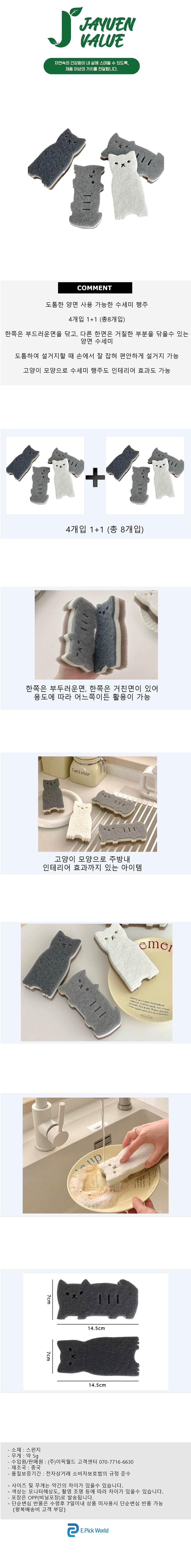 [자연밸류] 도톰 주방 설거지 수세미 4개입 1+1 (총8개입) JVM-DWD59