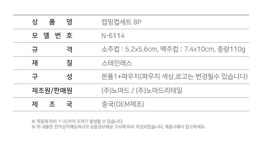 노마드 휴대용 캠핑용 컵 세트 8p N-6114