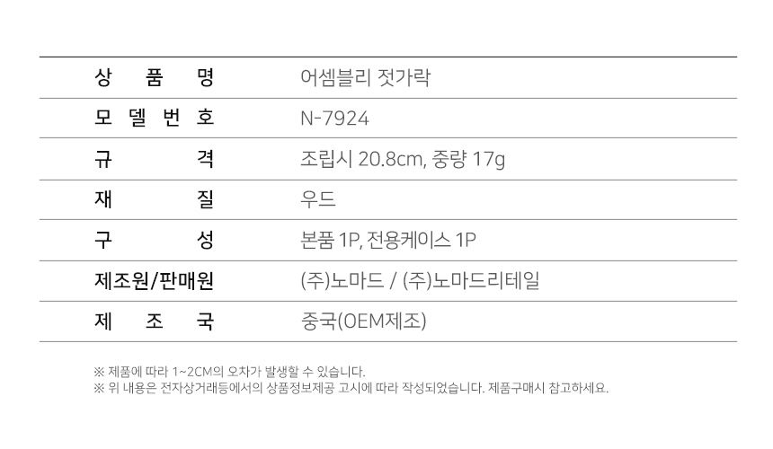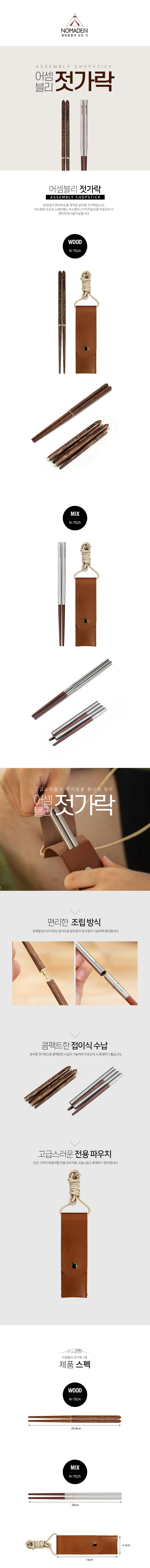 노마드 휴대용 캠핑용 어셈블리 젓가락 우드 N-7924