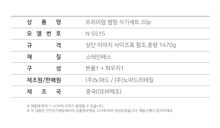 노마드 캠핑용 프리미엄 코펠 식기 세트20p N-5515