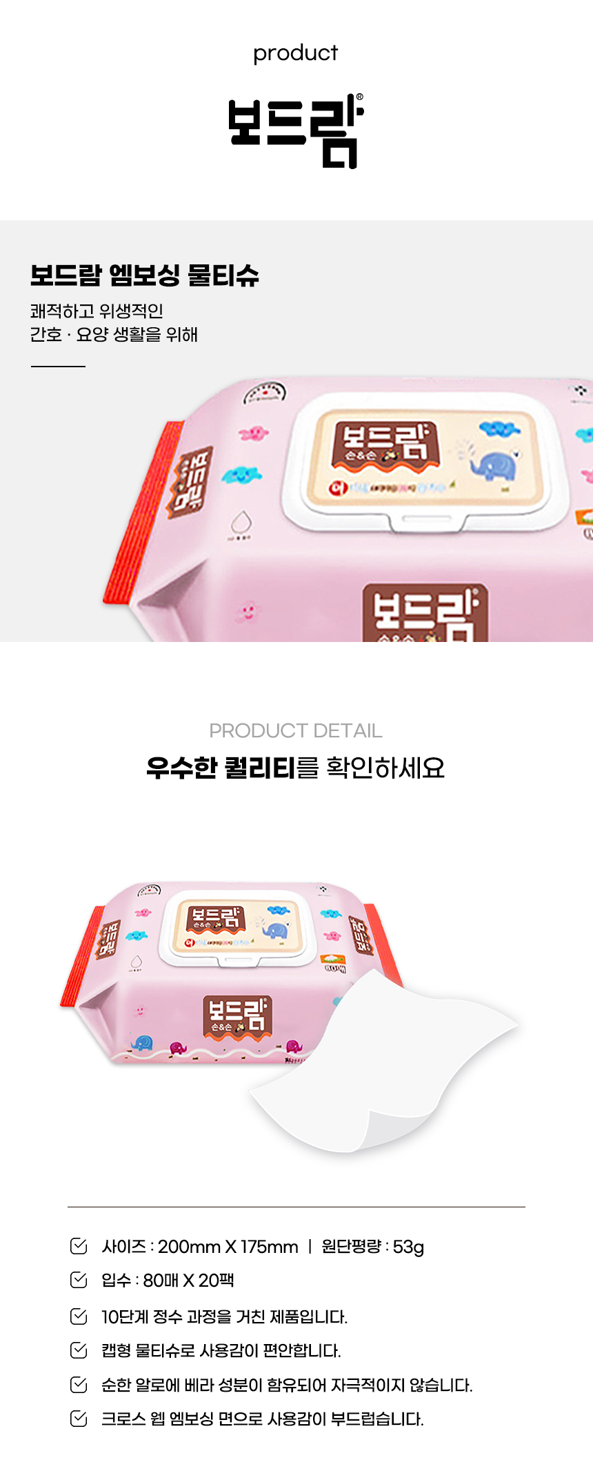 보드람 엠보싱 물티슈 80장X20팩