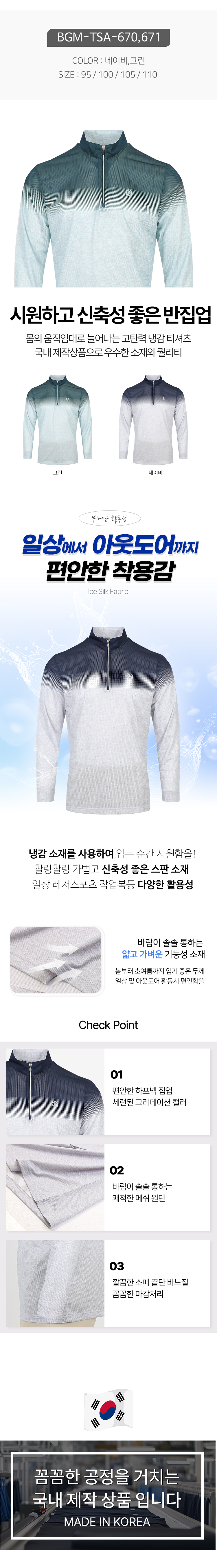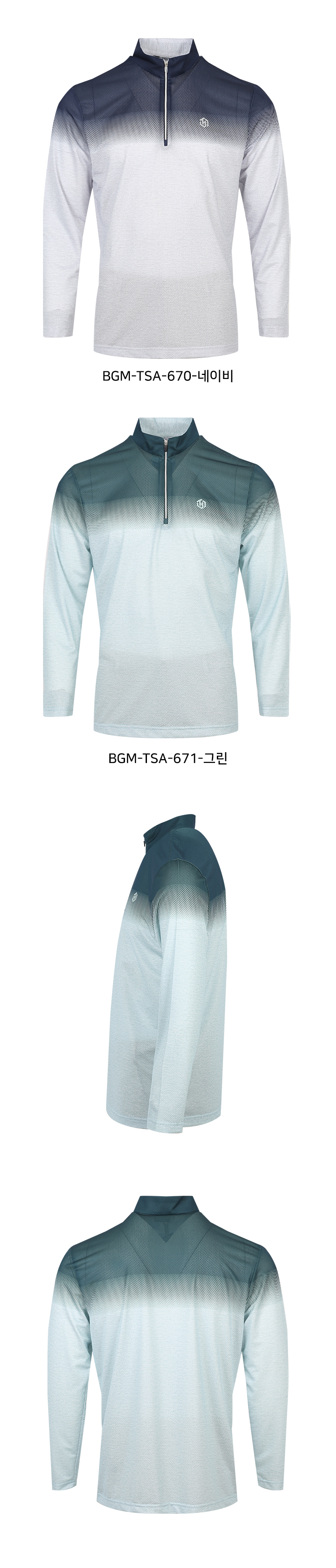 남자 그라데이션 냉감 하프넥 집업 긴팔 티셔츠 BGM-TSA-670