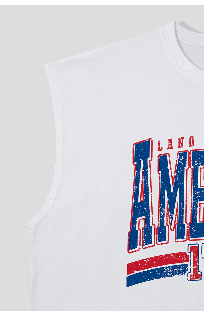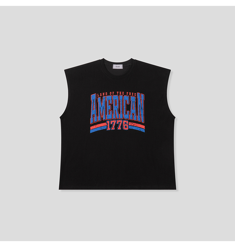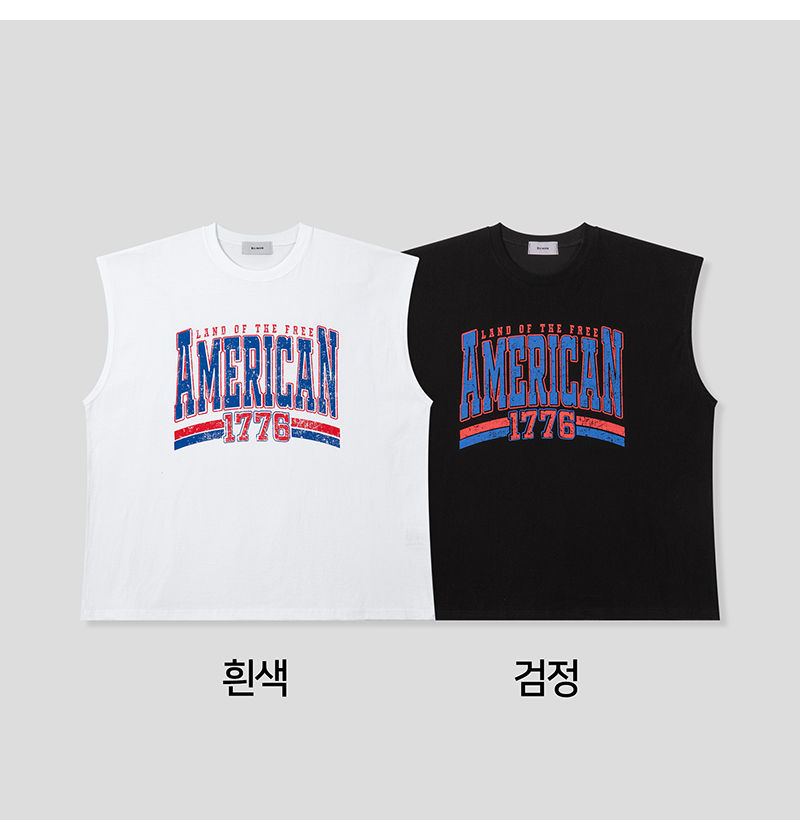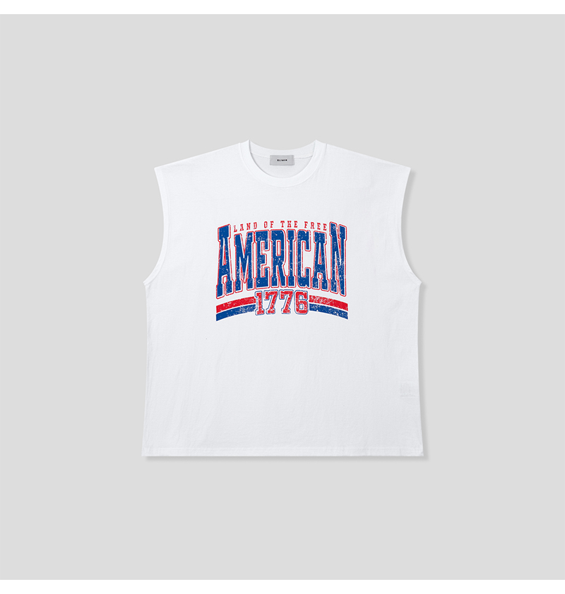 남자 오버핏 아메리칸 1776 민소매 티셔츠 RM-TS5-Q078-흰색