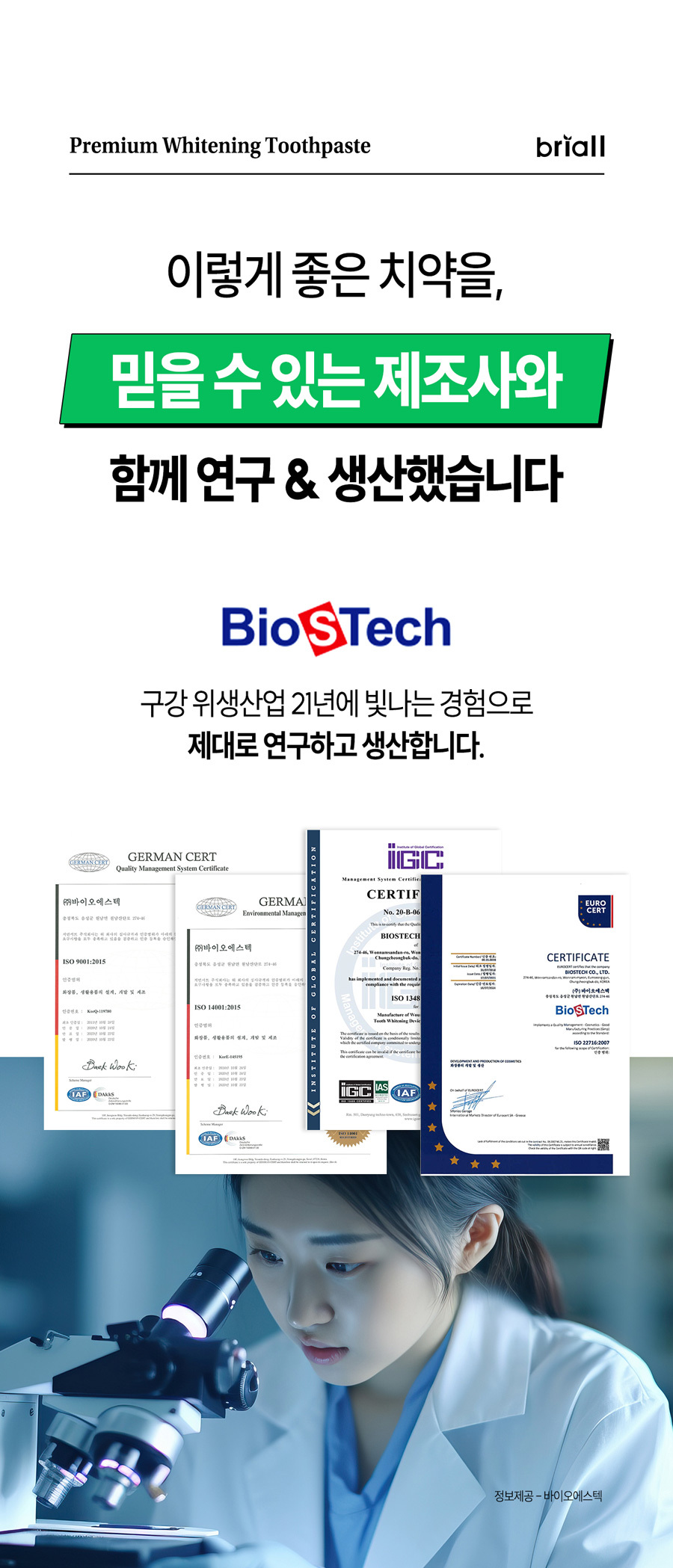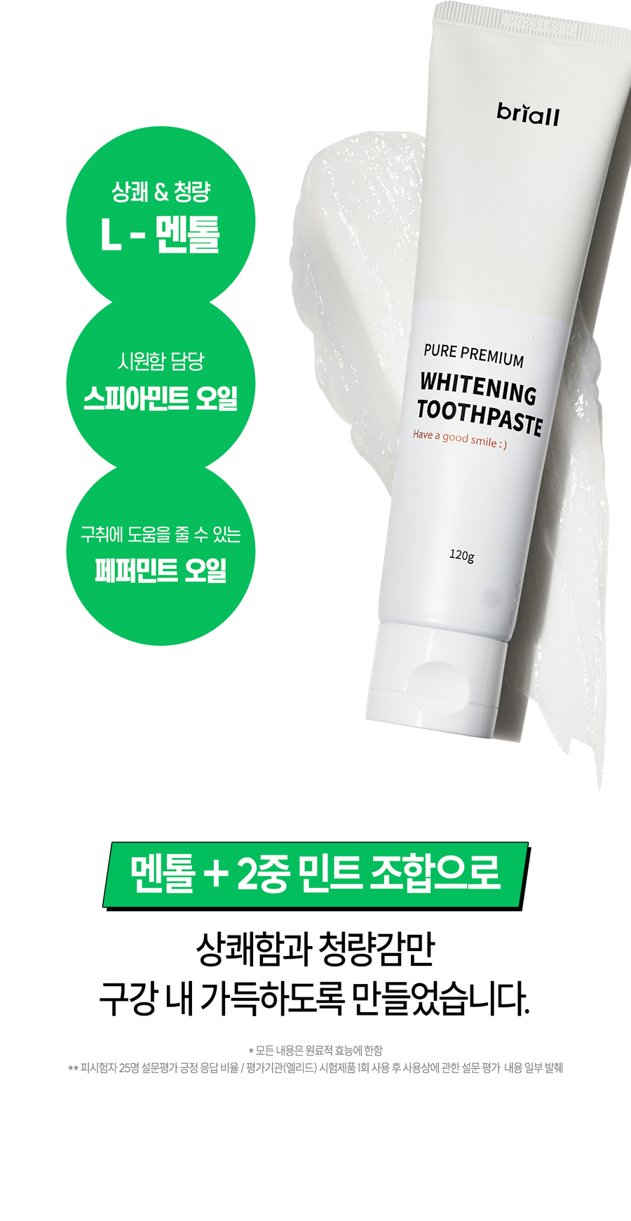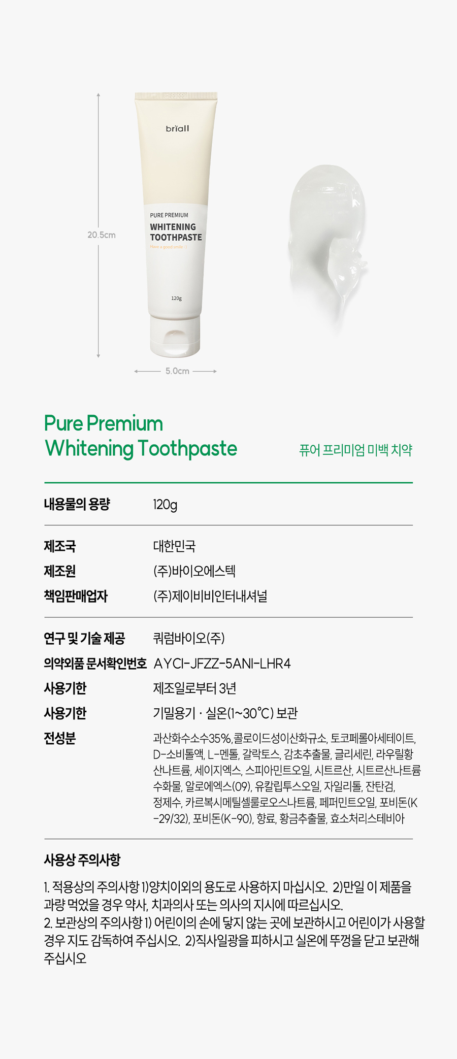 [브리올] 미백 화이트닝 치석 충치 프리미엄 미백치약 120g