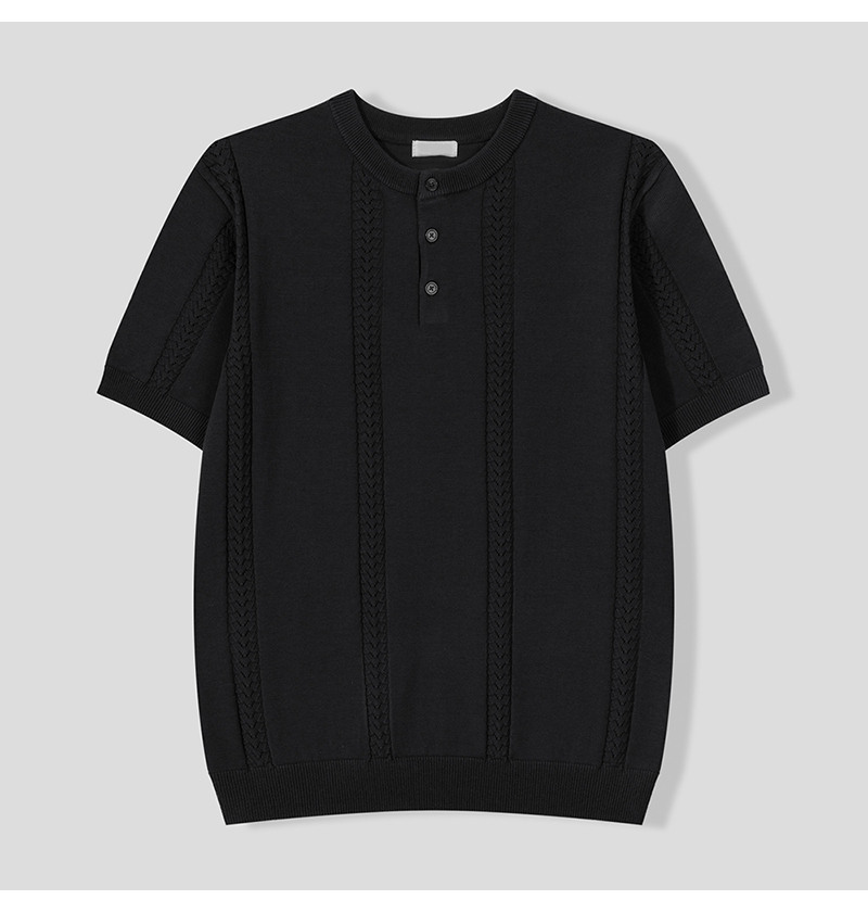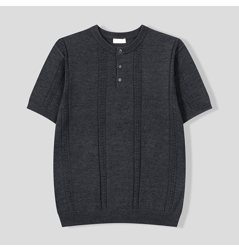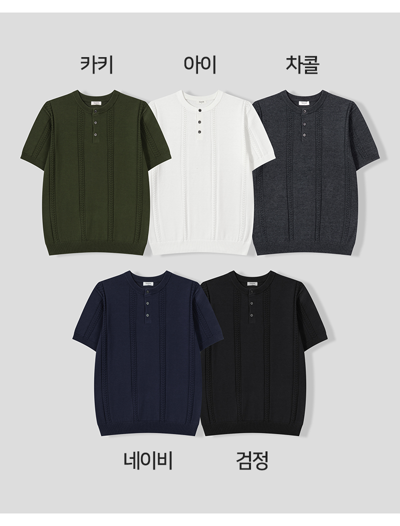남자 프리미엄 라운드 헨리 반팔 니트티 GN-KNH-Q012