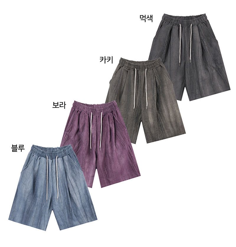 남자 워싱 피그먼트 밴딩 핀턱 하프팬츠 DS-PTH-Q261