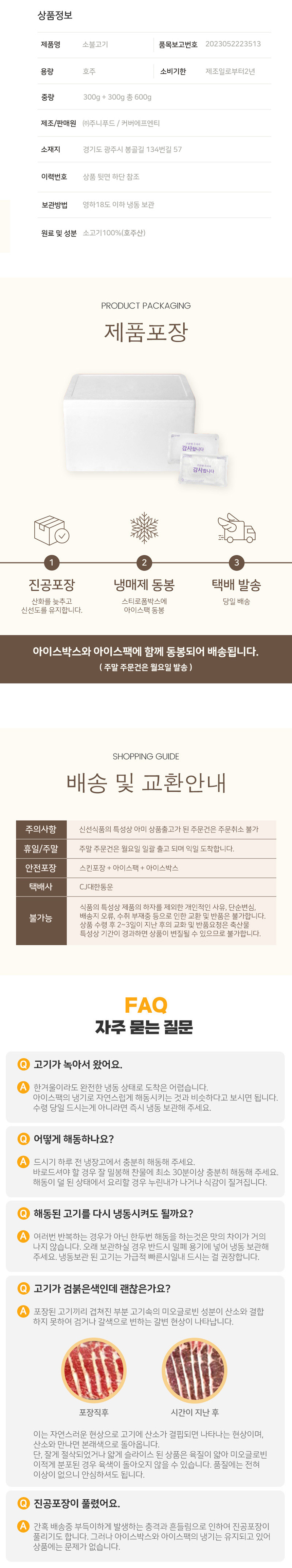 [부직포 포장] 호주산 MB 6,7등급 와규 소고기 목심(목살) 구이 샤브샤브 300g + 300g 선물세트