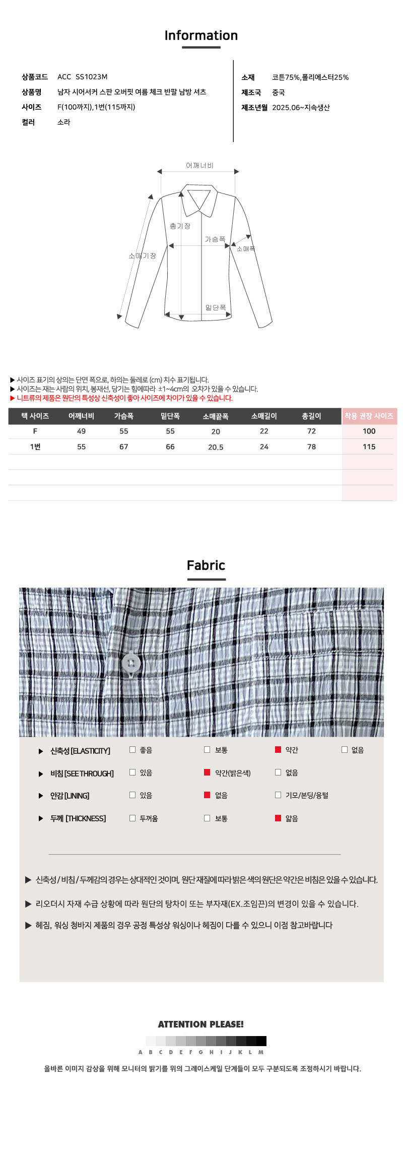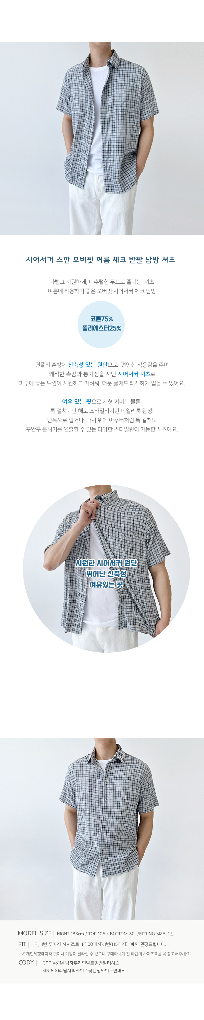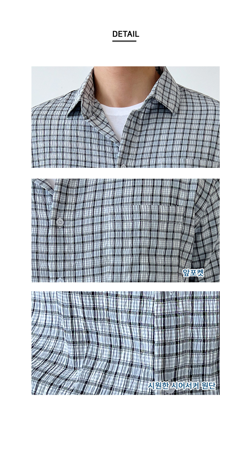 여름 남자 오버핏 시어서커 체크 반팔 셔츠 DJ-SHH-SACCSS1023M
