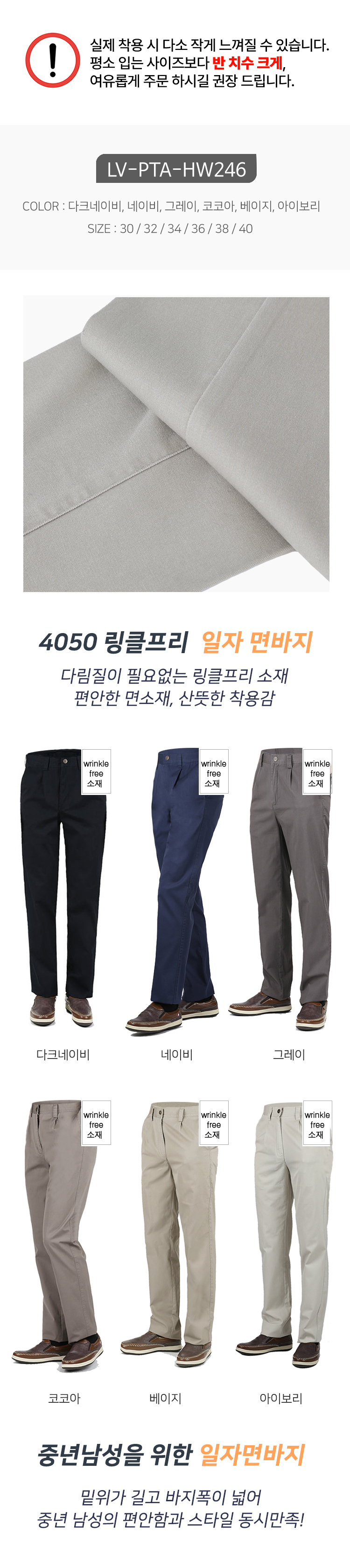 남자 간절기 원턱 링클프리 일자핏 면바지 LV-PTA-HW246