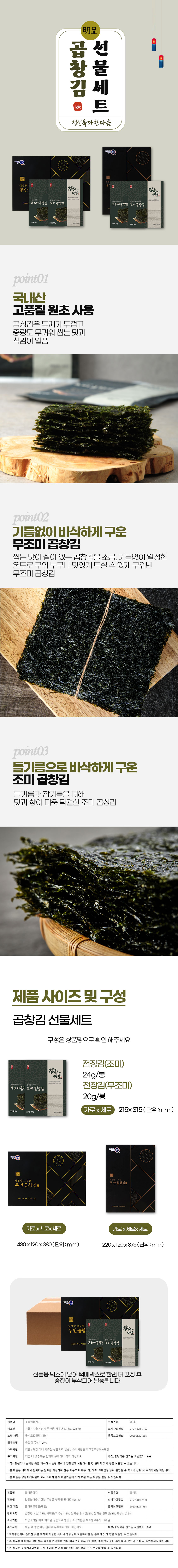 [브라이트데이] 김굽는마을 곱창김 선물세트(무조미곱창김 20g x 7봉 + 조미곱창김 24g x 7봉)