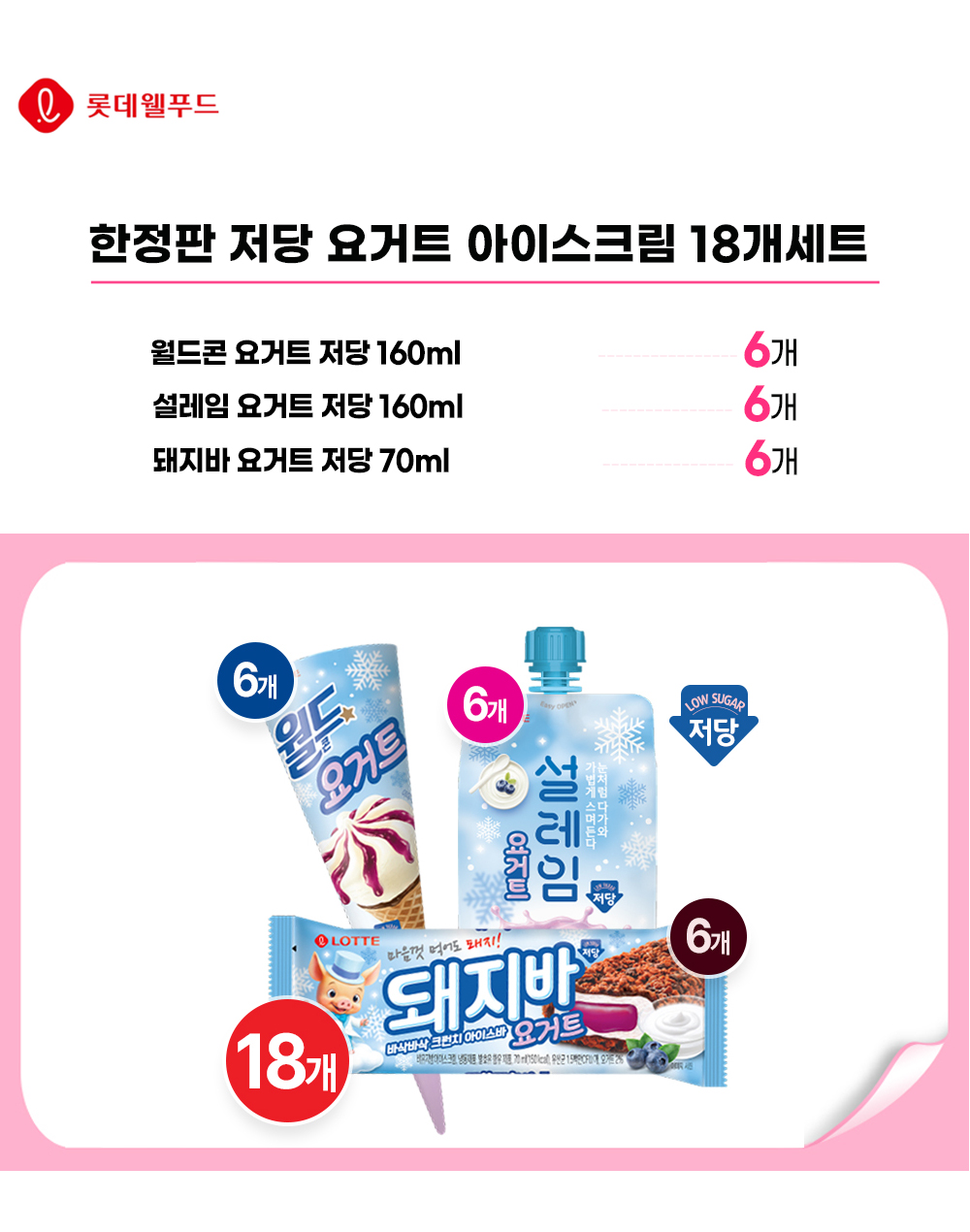 [롯데] 저당 요거트 아이스크림 18개 월드콘, 설레임, 돼지바